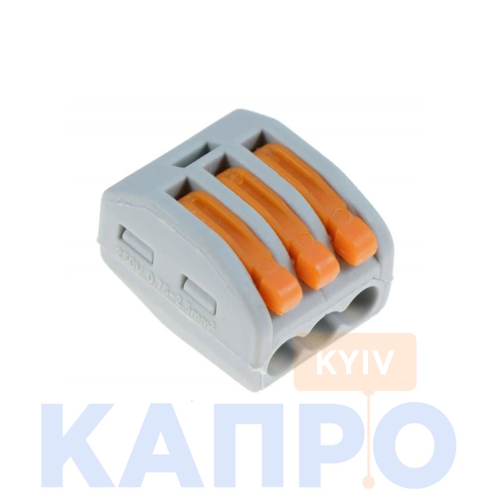 Клемма соединит.с нажимным рычагом Wago 222-413 для 3 проводов 0,08-4 кв.мм сер