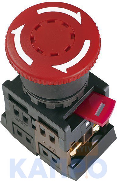 Кнопка-грибок c фиксац.d22 неон/240V 1з+1о ИЭК ANE-22 красн BBG40-ANE-K04