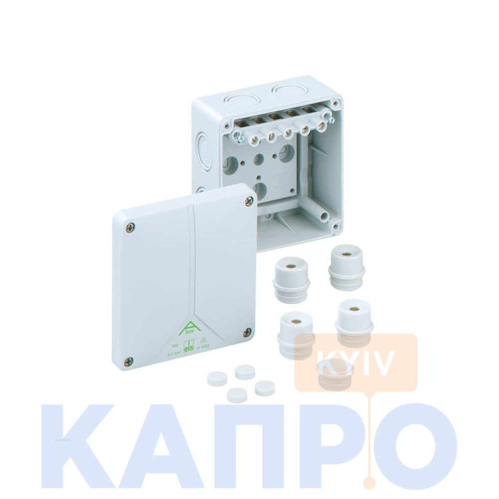С клеммой 5-полюсов x 2,5 mm² (4x2,5²/4x4²/3x6²) Читать полностьюОписаниеРаспределительная коробка Abox 060 предназначена для организации проводов. Степень защиты IP66 позволяет использовать ее на открытом пространстве с температурой до -25°. Коробка Spelsberg изготовлена из качественного поликарбоната, армированного стекловолокном и предназначена для настенного или потолочного монтажа. Имеет 7 эластичных вводов с боков M 25, 1 ввод на задней стенке. Технические характеристикиРазмер: 110x110x67 мм