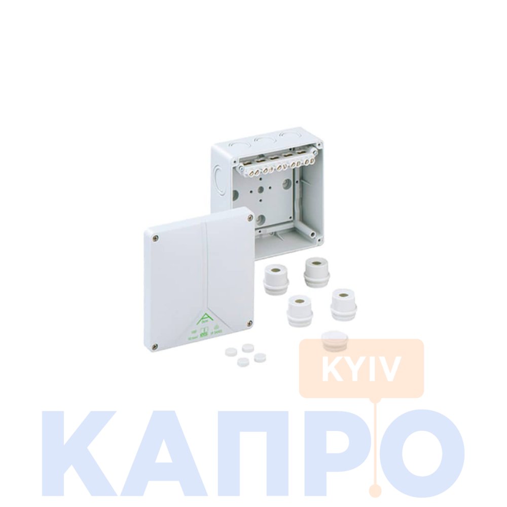С клеммой 5-полюсов x 2,5 mm² (4x4²/4x6²/4x10²) Читать полностьюОписаниеРаспределительная коробка Abox 100 предназначена для организации проводов. Степень защиты IP65 позволяет использовать ее на открытом пространстве с температурой до -25°. Коробка Spelsberg изготовлена из качественного поликарбоната, армированного стекловолокном и предназначена для настенного или потолочного монтажа. Имеет 7 эластичных вводов с боков M 25, 1 ввод на задней стенке. Технические характеристикиРазмер: 140x140x79 мм