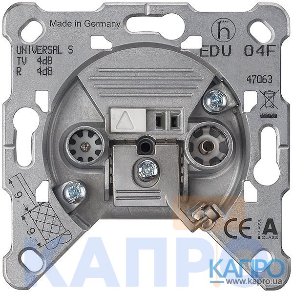 Механизм розетки TV+R концевой 2400мГц затух.2-4дБ Siemens 5TG 2485