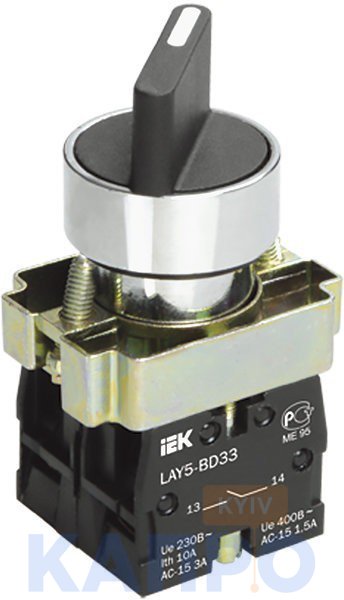 Переключатель 3-позиц.І-О-ІІ станд.ручка ИЭК LAY5-BD33 черн BSW60-BD-3-K02