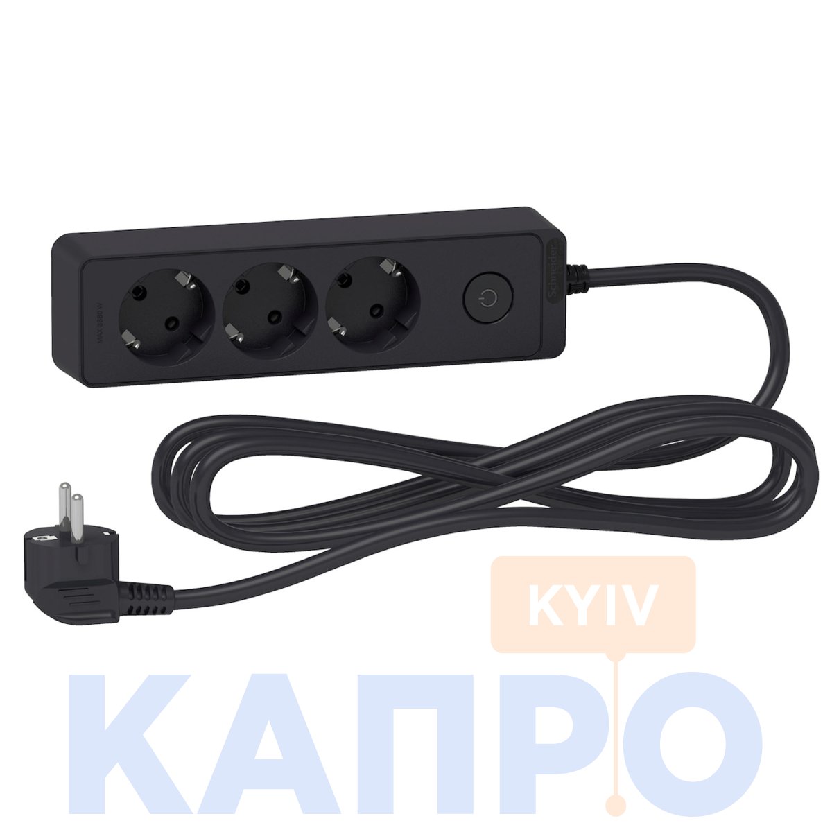 – Тип: Удлинитель UNICA EXTEND на 3 розетки с заземлением, 3м, черный