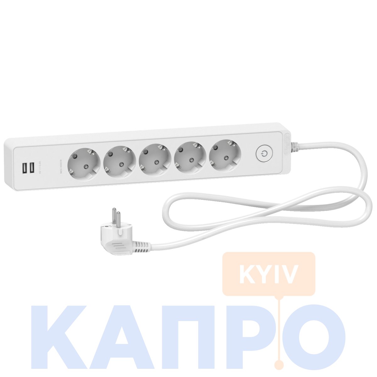 – Тип: Удлинитель UNICA EXTEND на 5 розеток с заземлением+2*USB-розетки, 1.5м, белый