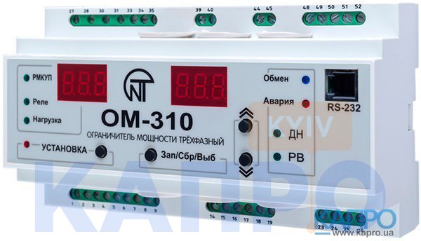 ОМ-310 обеспечивает следующие виды защит потребителя: при некачественном сетевом напряжении (недопустимые скачки напряжения, обрыв фаз, нарушение чередования и слипание фаз, перекос фазных/линейных напряжений); при превышении заданного максимального тока по любой из фаз нагрузки;