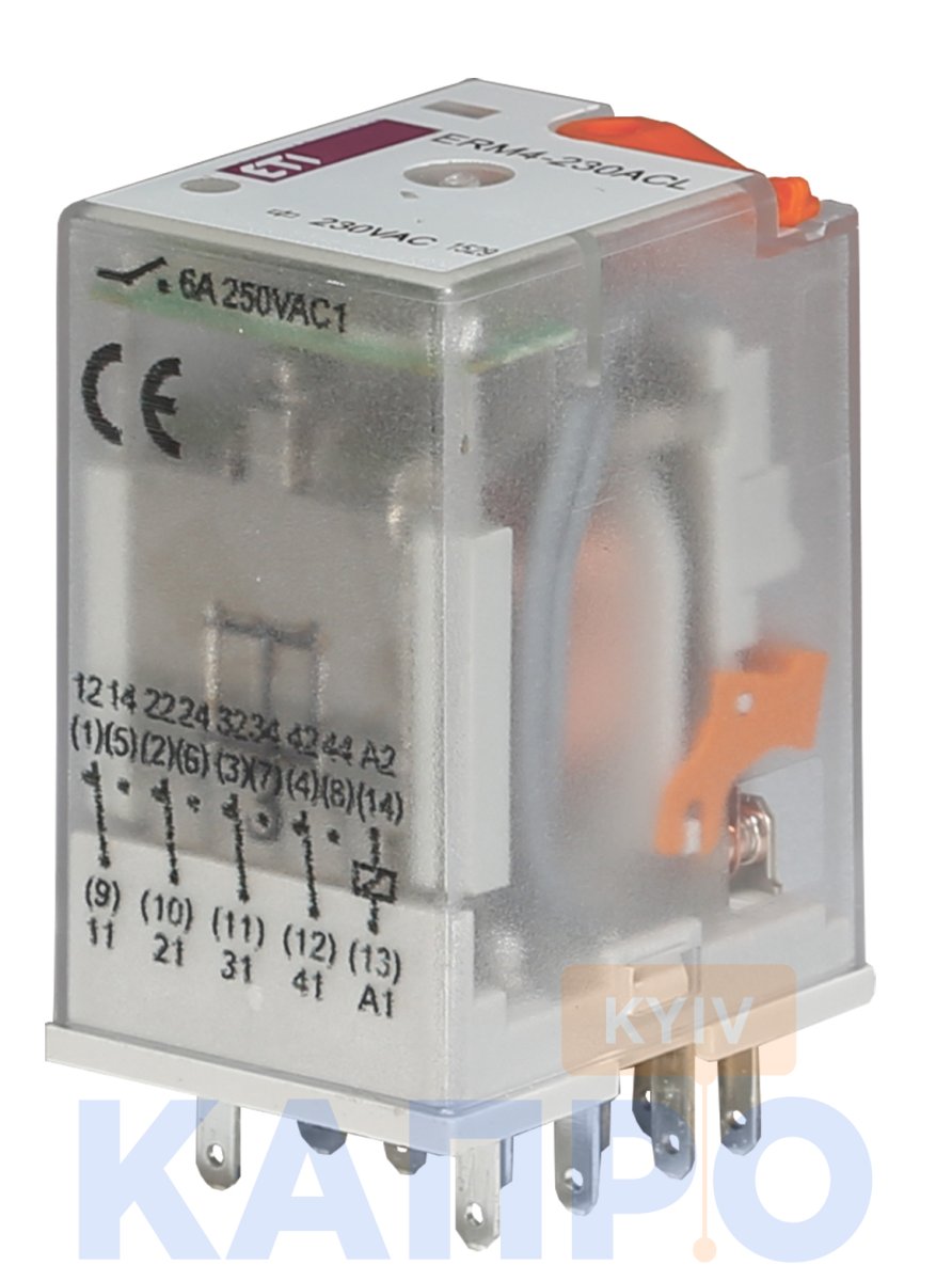 Реле промежуточное AC230 ETI ERM4-230ACL (4*6A AC1) 2473011 крас.LED
