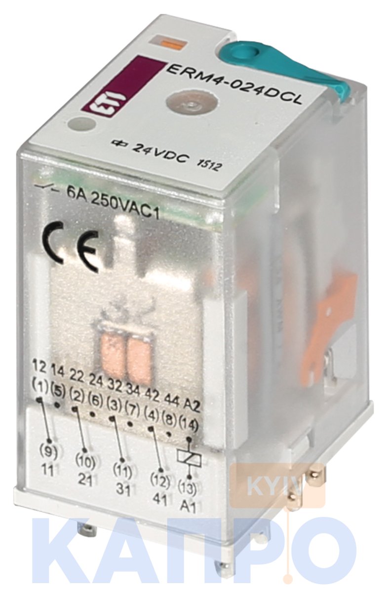 Реле промежуточное DC24 ETI ERM4-024DCL (4*6A AC1) 2473007 крас.LED