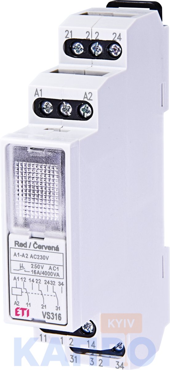 Реле промежуточное AC230 DIN 1мод.ETI VS 316K 230 (3*16A AC1) 2471202