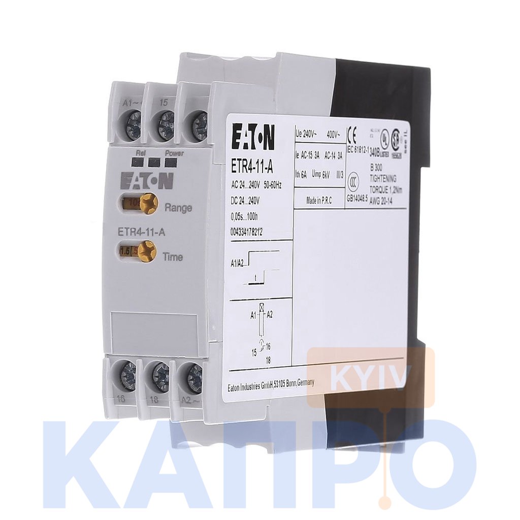 Реле времени аналог.задерж.включ.10 диапаз.AC/DC24-240V 1,3мод.Eaton ETR4-11-A (1*16А AC1) 31882