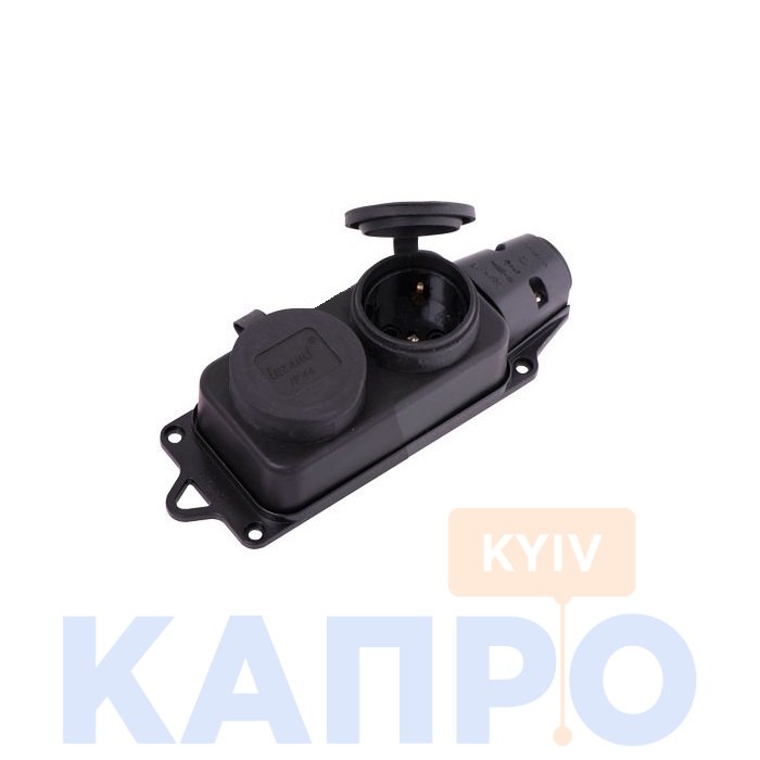 Розетка З/К 2-я каучук IP44 Lezard 16А 106-0400-0110 чер