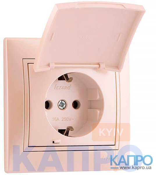 - Розетка с заземл.контактом с крышкой 16А Lezard Mira 701-3030-123B бел.перламутр