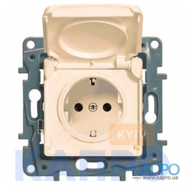 • Розетка с заземл.контактом с крышкой со шторками IP44 Etika 664847 сл.кость