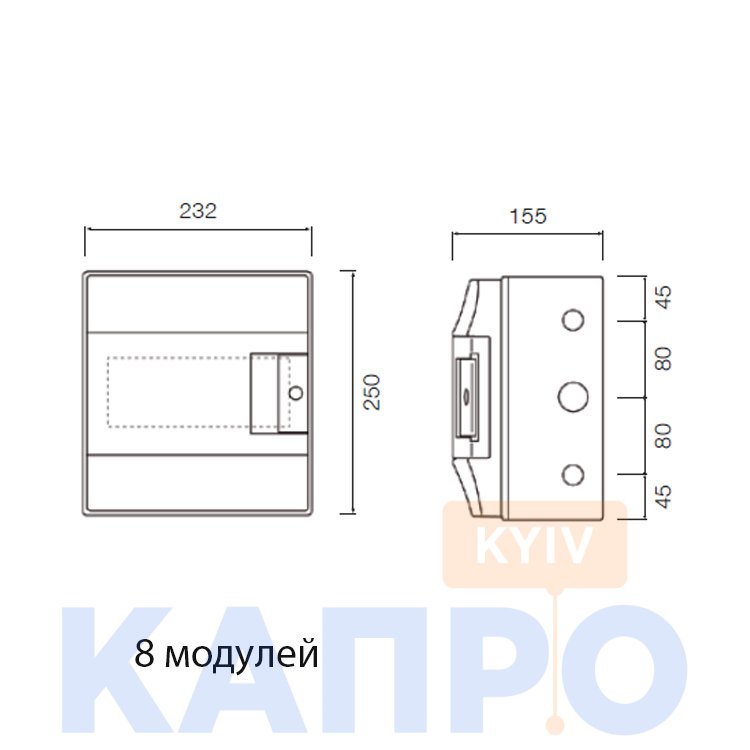 Щит накладной 8-мод. IP65 Mistral65 (750°) непрозрачная дверь, с клеммным блоком, 1SLM006501A1101