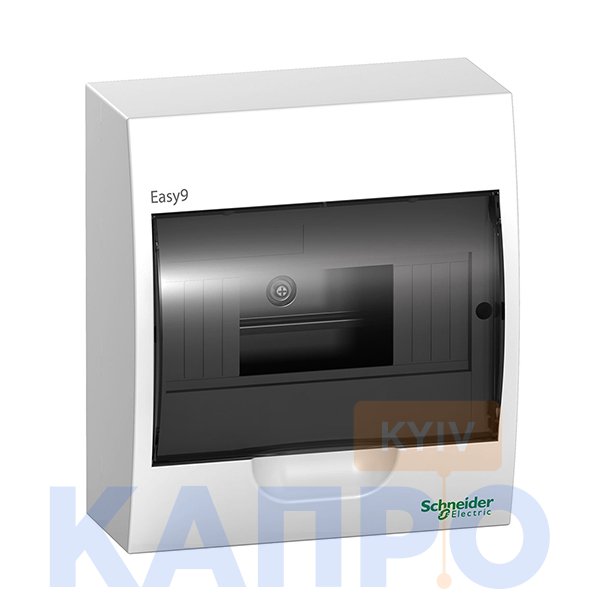 – Тип: Щит пластиковый навесной Easy9, дымчатые двери 1ряд/8мод. +2клем.колодки EZ Schneider Electric