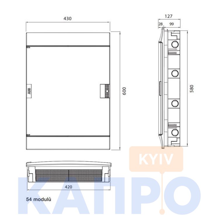 Щит встроенный, 54-мод. MISTRAL41F (650°) непрозрачные двери, без клемм, 1SLM004100A1109