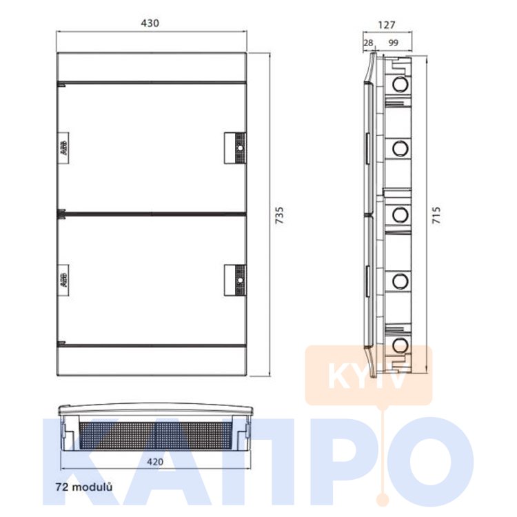 Щит встроенный 72-мод. MISTRAL41F (650°) прозрачные двери, с клеммами, 1SLM004101A1210