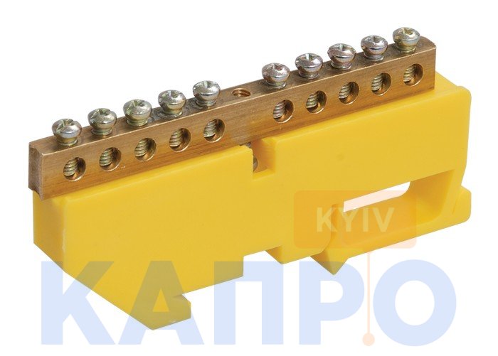 Шина с изолятором ШНИ-6х9-20-Д-Ж от IEK предназначена для электрического и механического соединения нулевых, защитных и фазных проводников.