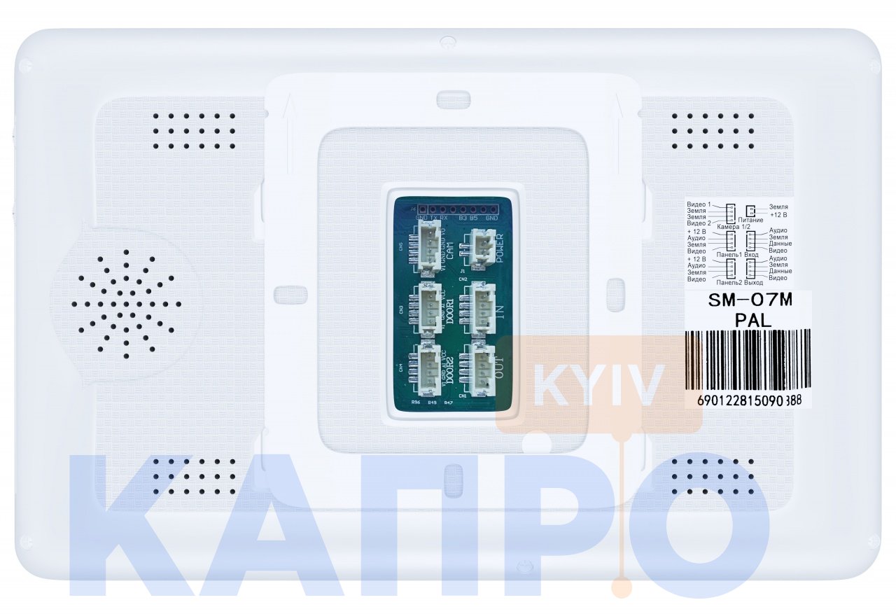 – Підключіть необхідні комунікаційні проводи та зафіксуйте відеодомофон на кронштейні.Сучасні функції відеодомофону SМ-07M дозволяють використовувати пристрій максимально ефективно. Це одночасно багатофункціональний та бюджетний домофон, а завдяки його лаконічному дизайну та спокійним кольорам він гарно пасуватиме до будь-якого інтер’єру.