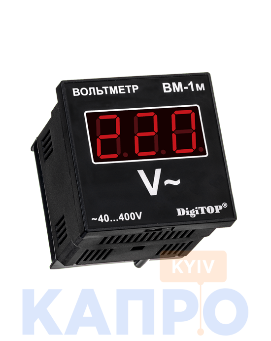 Вольтметр 1ф щитовий DigiTop ВМ-1М 100-400V предназначен для изменения действующего значения напряжения переменного тока частотой 50 Гц в однофазной сети.
