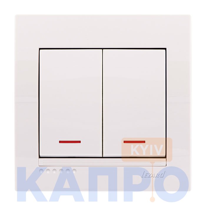 - Выключатель 2-кл.с п/св.Lezard Deriy 702-0202-112 бел