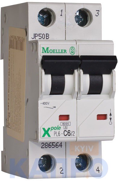 Выключатель автоматический 2-п Eaton 6kA PL6-C6/2 6A 286564