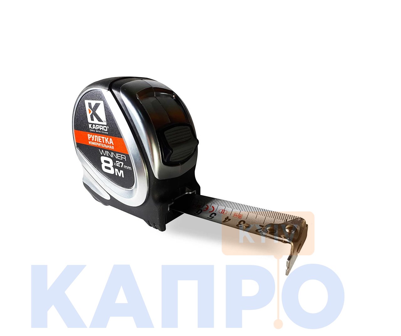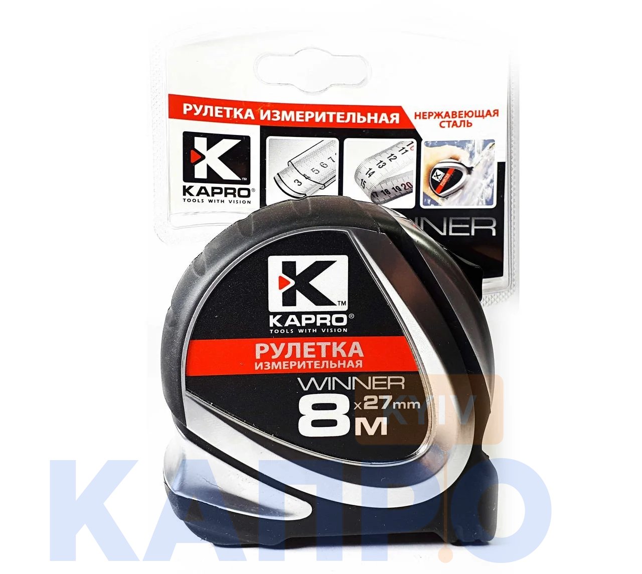 – Тип: Рулетка з нержавіючим полотном 8м*27мм 609-08 KAPRO