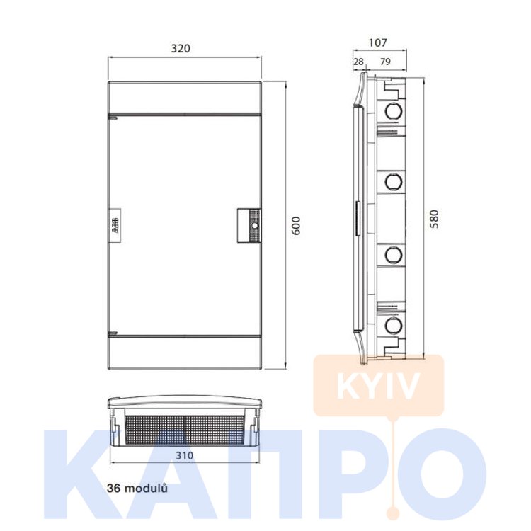 Щит вбудований, 36-мод. MISTRAL41F (650°) непрозорі дверцята, без клем