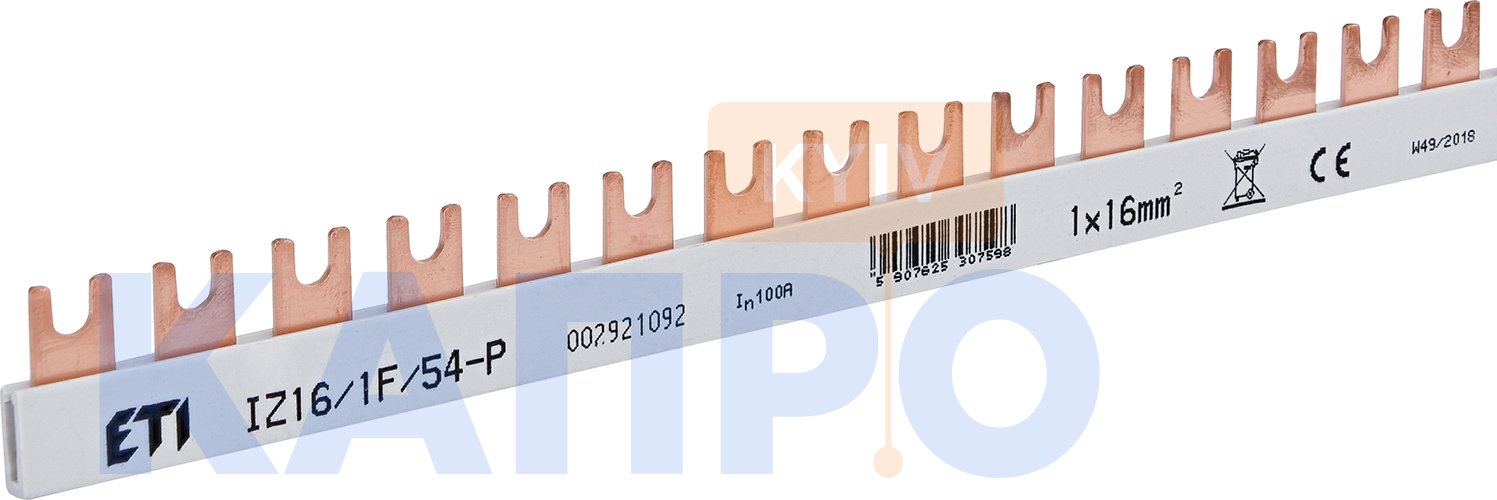 Шина з'єднув. FORK 1-ф 100А 54мод.16мм2 ETI IZ 16/1F/54 1м 2921092