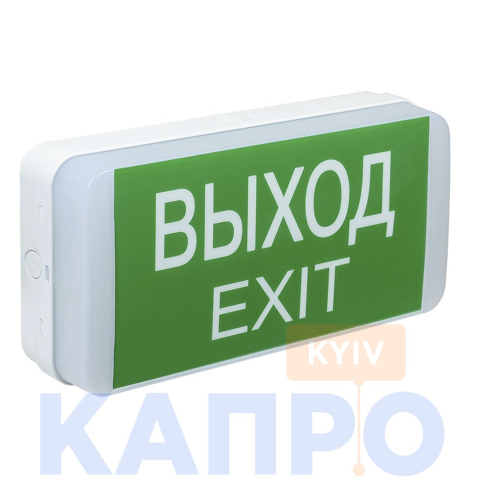ПВХ-наклейка «ВИХІД» в комплекті.Відповідають вимогам ГОСТ Р МЕК 60598-2-22 з аварійного висвітлення.