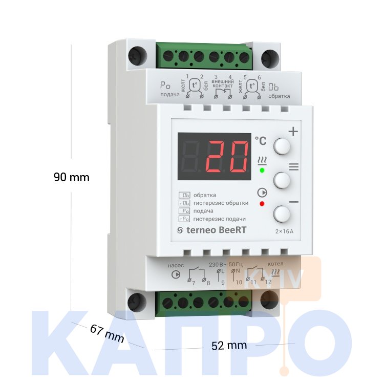 Для Електродний (іонніх) и тенів котлів. Два датчика (обратка и подача). Підключення зовнішнього програматора. Зберігає температурні налаштування при відключенні Завдяк тумблер включення / Відключення. Фунція Блокування.
