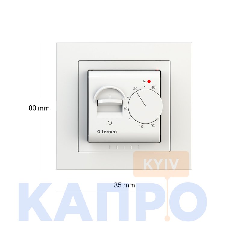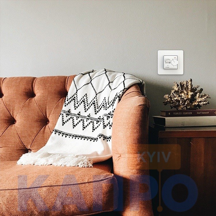 Стандартний комплект постачання включає терморегулятор, датчик температури зі з’єднувальним проводом та декоративну рамку, яка стане доповненням до будь-якого інтер’єру. Монтаж здійснюється в стандартний підрозетник діаметром 60 мм.