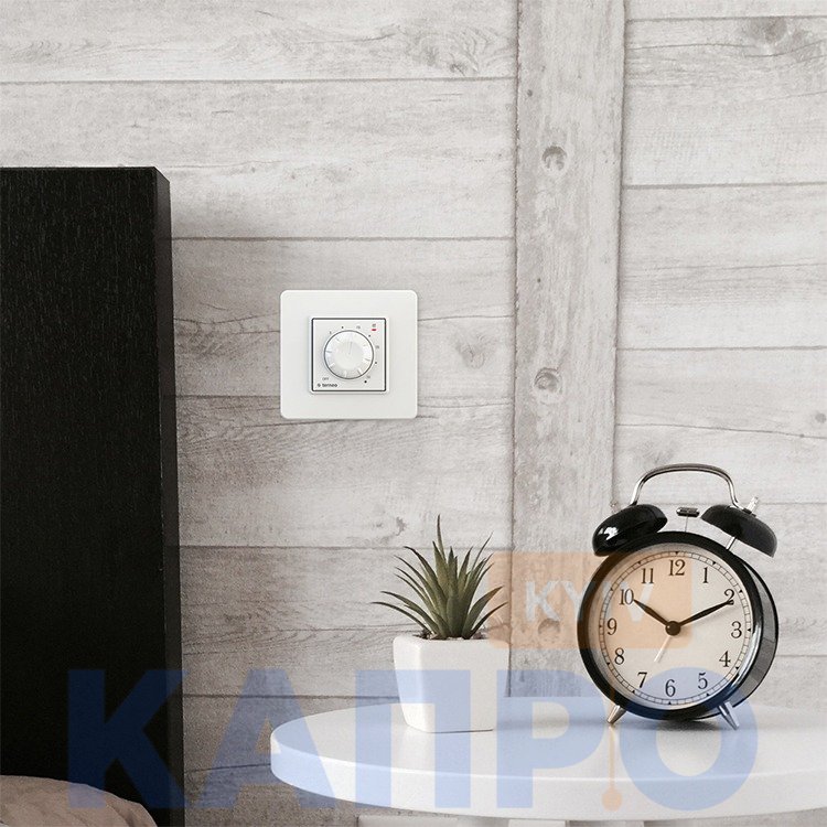 Усе необхідне для комфортного обігріву — вже в комплекті. Не потрібно використовувати додатковий датчик температури, він уже присутній у самому терморегуляторі! Монтаж пристрою відбувається в підрозетник, а декоративна рамка надасть йому елегантного вигляду.