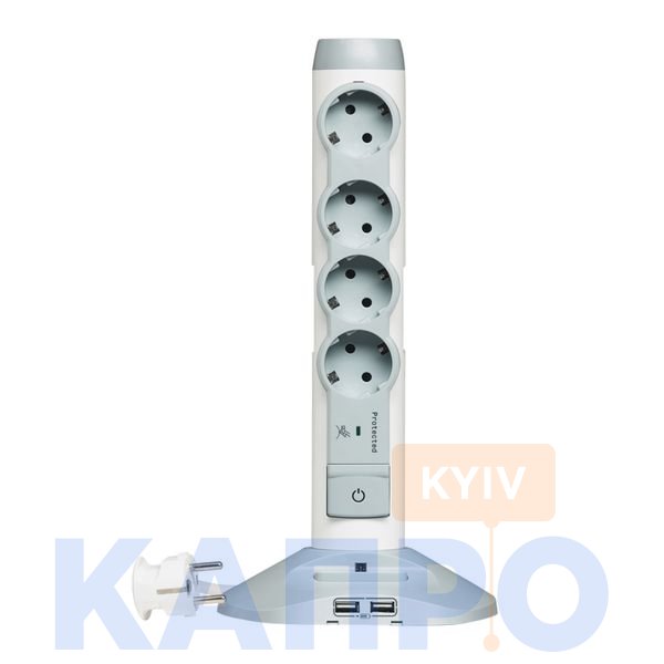Конструкція блоку передбачає не тільки розташування виробу під потрібним нахилом, а й можливість кріплення його до стіни, меблів або робочої поверхні. Вбудований розрядник забезпечує захист будь-якого підключеного до подовжувача обладнання від перенапруги і електричного розряду.