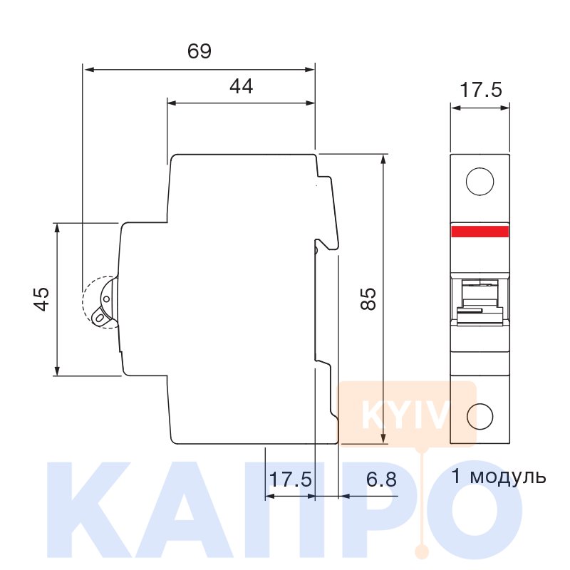 Схема підключення та основні технічні дані нанесені на фронтальну частину автоматичного вимикача.